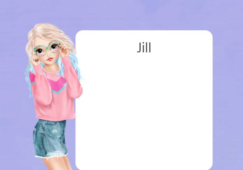 Jill is lawaaiig, vastbesloten – en daarom soms niet zo makkelijk. Maar voor Janet en Liv geen probleem: met z'n tweeën is de tweeling een grote aanwinst voor hun huis! Jill heeft niet zulke goede ogen en moet een bril dragen. Maar meestal draagt ze lenzen. Ze is te onderscheiden van haar zus June doordat ze een moedervlek onder haar linker oog heeft.
